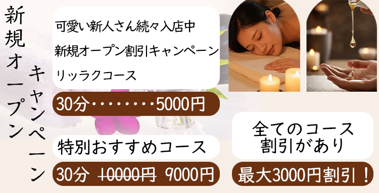 当店では、アロマオイルの効能と当店自慢のセラピストによるリンパマッサージの相乗効果による、癒しのひとときをお客様お一人お一人にお届けしております、自然で心やすらぐ優美な香りを、施術中はもちろんご帰宅お休みになってから翌日朝目覚めでまで楽しんで頂けます、どうぞゆっくりご堪能ください。